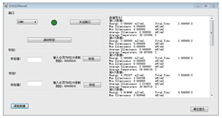 軟件具有標(biāo)定儀器,和讀取數(shù)據(jù)的功能。如果沒胡專用標(biāo)裝光源,禁止點擊開始標(biāo)定操作。點擊讀取數(shù)據(jù)后,會讀出最近歷史數(shù)據(jù)(最多100次),并保存在D盤根目錄下。存儲為.txt格式。