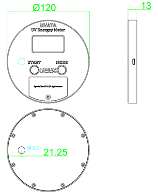| UV能量計UE550實物圖 | UV能量計UE550尺寸圖 |